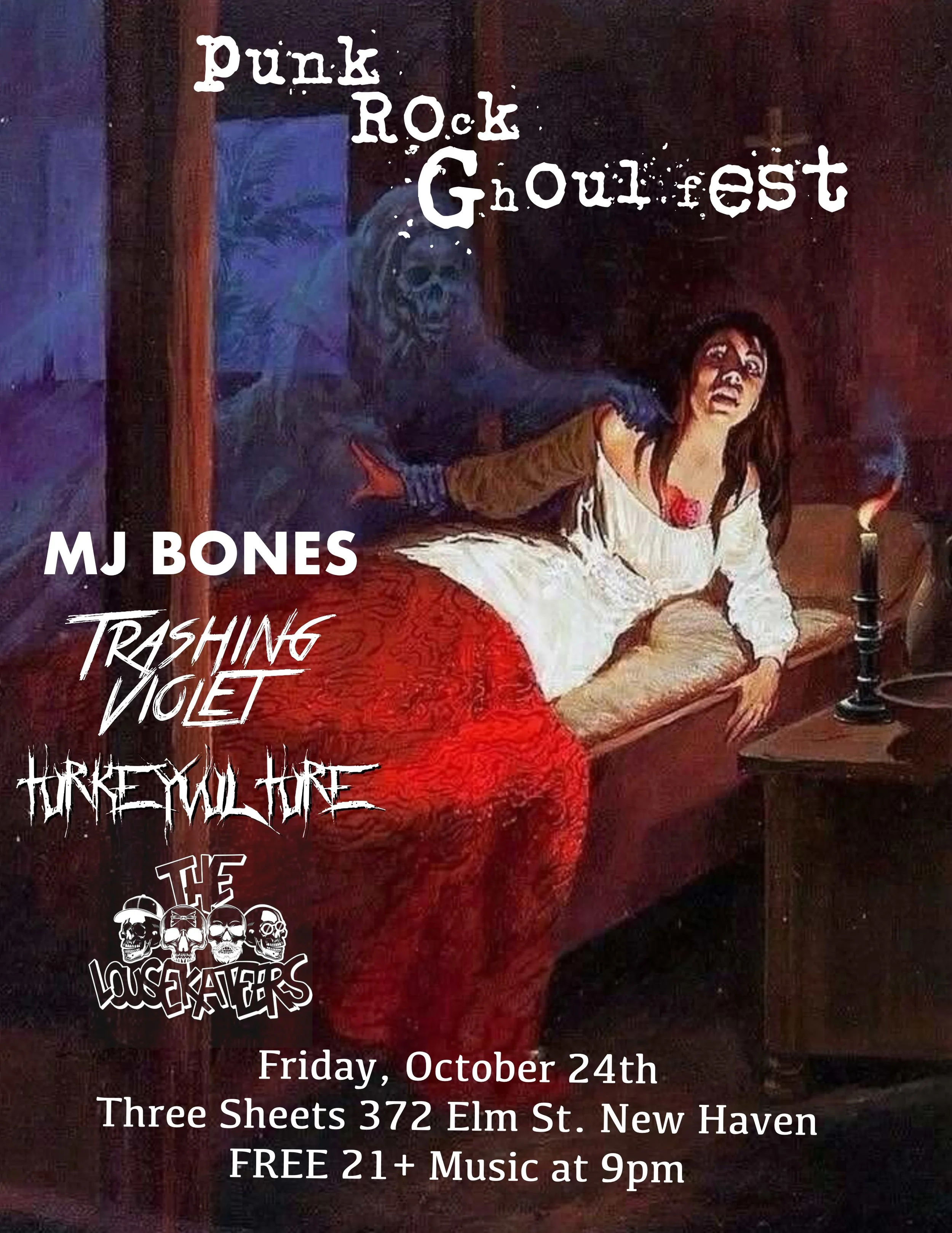 It's a night of Ghouls, Ghouls, Ghouls! Join us at Three Sheets (New Haven) for Halloween mischief and mayhem. W/ Corpse Flower, Turkey Vulture, and Hell Fairy.